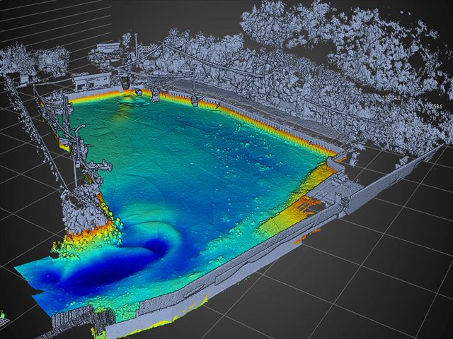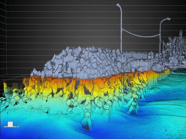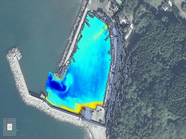 その結果に基づき、報告書作成(水深・汀線測量)測量諸計算、図面作成、三次元点群データの作成を行った。